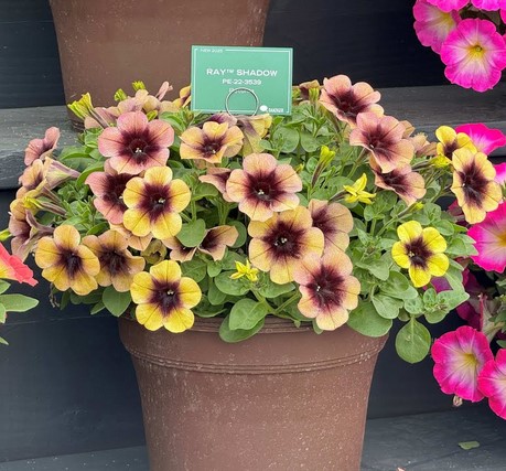 Charakteristika: Petunie ´RAY® SHADOW´ kombinuje exkluzivní barevnou paletu květů s kompaktním růstem. Květy této odrůdy jsou velké a působivě zbarvené - rozvíjejí se v krémové až světle žluté barvě s tmavým fialovobronzovým okem uprostřed a postupně dozrávají do jemných růžových až fialových tónů.