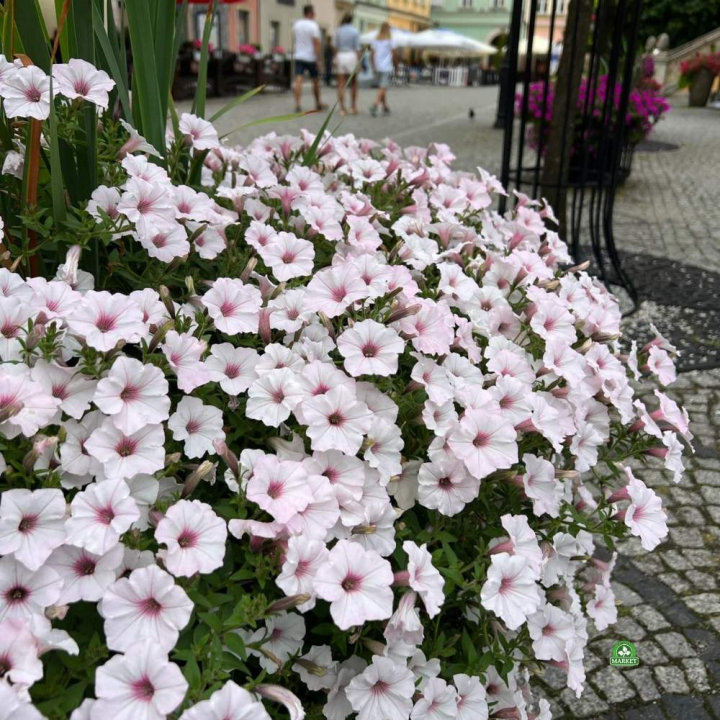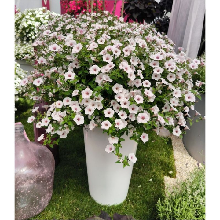 Charakteristika: Petunie ´SUPERTUNIA® VISTA SILVERBERRY´ s krásnými bílými květy s jemným růžovým žilkováním, vytváří elegantní a světlý efekt v zahradní a hrnkové výsadbě. Výborně se kombinuje s tmavě růžovými, fialovými nebo modrými letničkami vysazenými spolu se zelenou dichondrou.