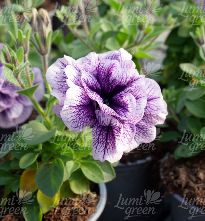 Převislá plnokvětá petúnie s aromatickými květy světle fialové barvy.