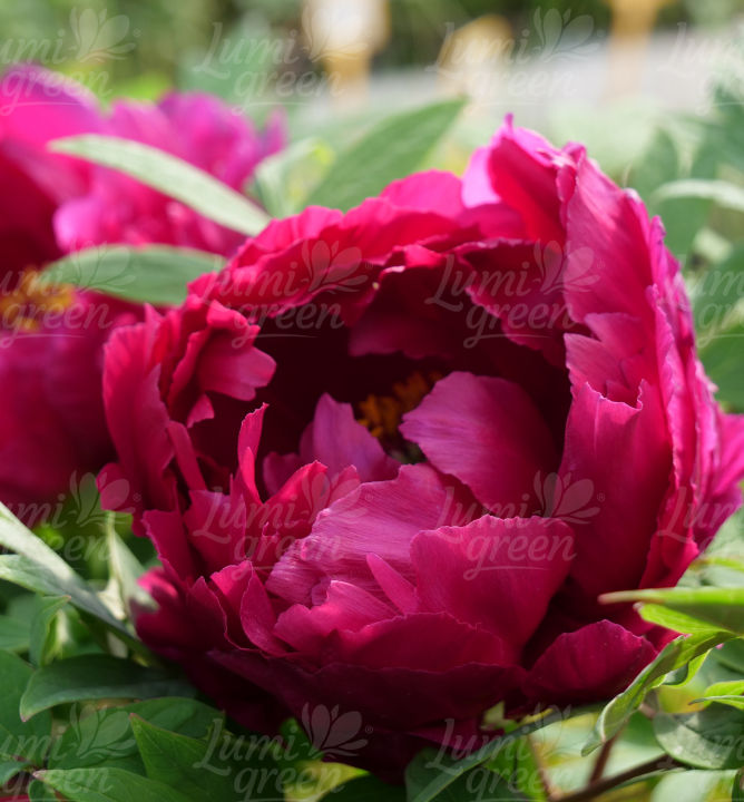 Charakteristika: Pivoňka keřovitá ´MO RUN JUE LUN´ je krásná odrůda s velkými poloplnými květy růžovočervené až bordó barvy, které po rozvití odhalí výrazné zlatožluté tyčinky. Okvětní lístky jsou jemně nařasené a celá květ má miskovitý tvar. Kvetení trvá v průběhu června až července. Listy jsou výrazně střižené, tmavě zelené barvy. Dřevité japonské pivoňky patří mezi nejkrásnější kvetoucí dřeviny, nazývají se také růže bez trnů. Jsou to roubované keře, které mají v dospělosti výšku do 2m. Využití najdou v okrasných zahradách, v moderních živých plotech a také v kyticích.