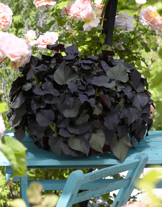 Povijnice je známý také jako "sladké brambory". Je to hlíznatá rostlina původem z tropické a subtropické oblasti střední Ameriky. Hlízy této rostliny jsou jedlé. Rostlinu doplňují kalichovité růžové kvítky. Vysazujeme jako doplňkovou rostlinu do závěsných květináčů, kde mezi ostatními balkónovými rostlinami vytváří krásný barevný kontrast.