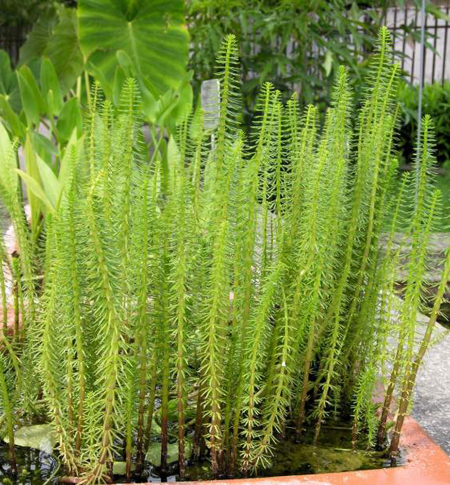 Oblíbená vodní rostlina se vzpřímeně rostoucími praslenovitými výhony nad hladinou.