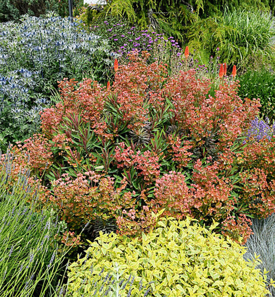 Charakteristika: Pryšec ´GALAXY GLOW´ je pôsobivý kultivar, vyznačujúci sa sviežimi modrozelenými listami úzkeho tvaru, ktoré môžu nadobúdať svetlý ružový odtieň. Kvitne výnimočne dlho zelenožltými kvetmi, ktoré dozrievajú do koralovoružových farieb. Vďaka svojej unikátnej farbe sa dokonale hodí do kombinácie s inými nazeleno kvitnúcimi pryšcami a inými kvitnúcimi trvalkami, s ktorými vytvára kontrastnú kombináciu.