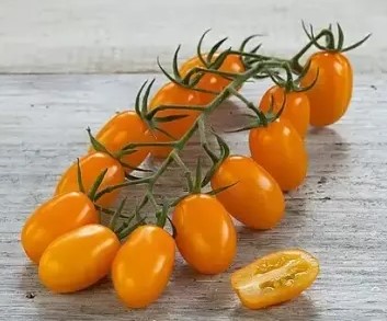 Středně raná odrůda cherry rajčata, s chutnými oválnými plody oranžové barvy.
