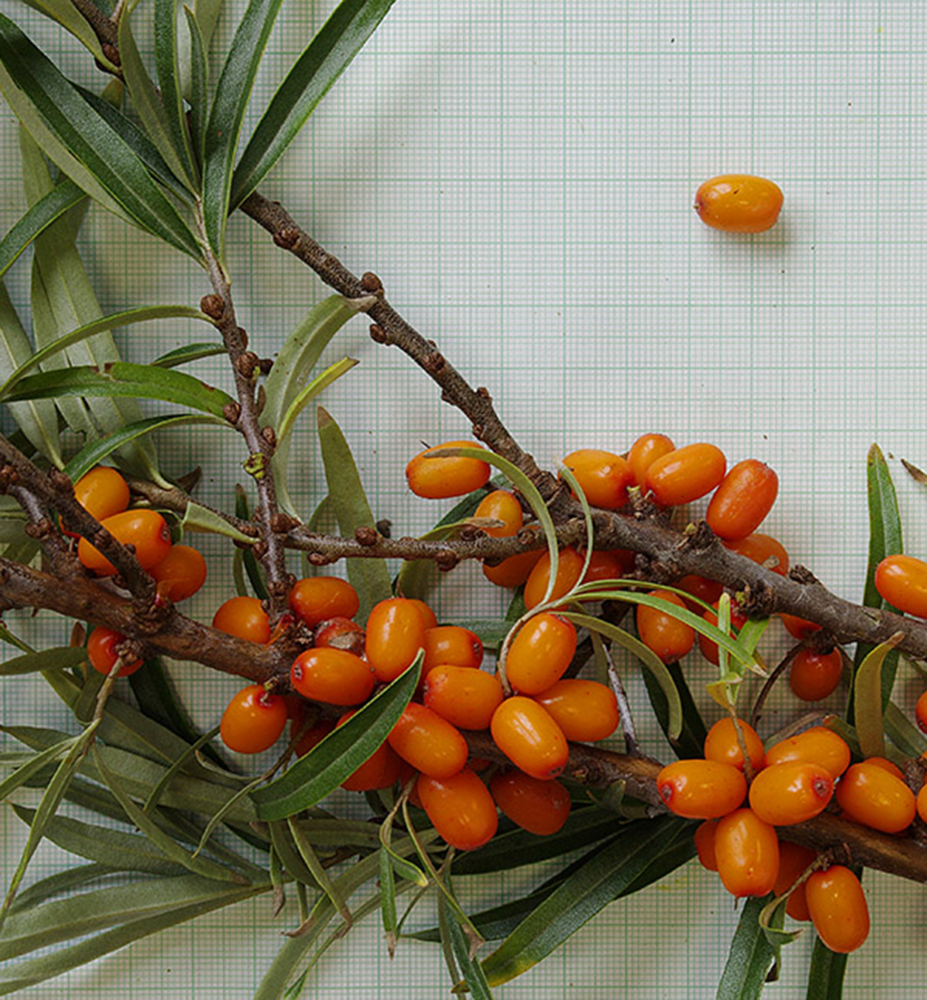 Nová, velmi úrodná odrůda rakytníku s mírně sladkými aromatickými plody.