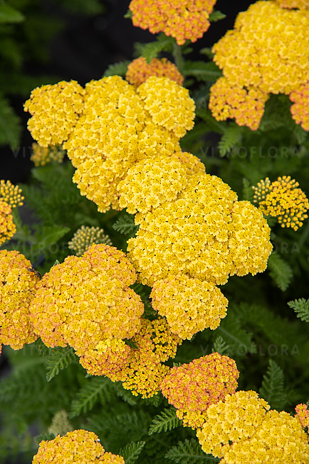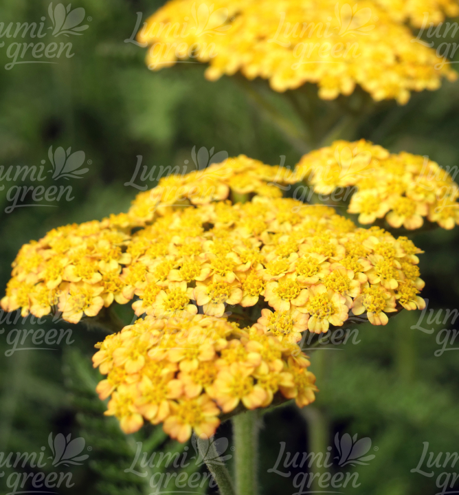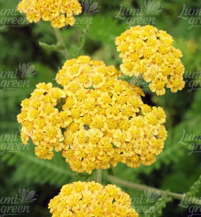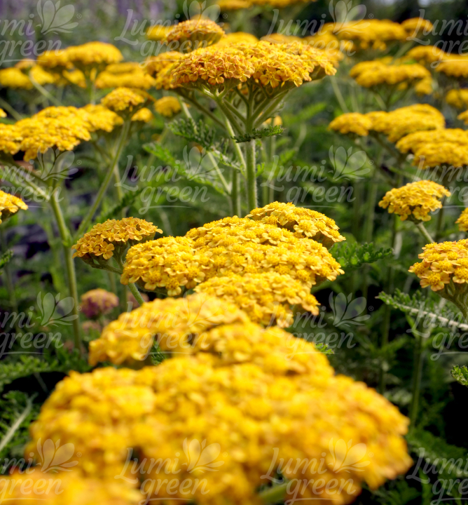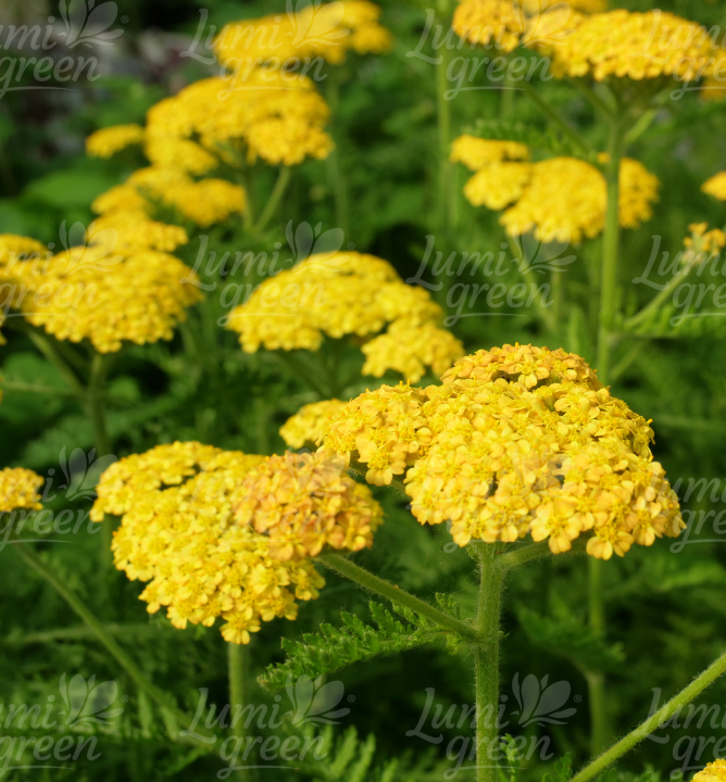 Zářivý středně vysoký řebříček se zlatožlutými květy a aromatickými listy.