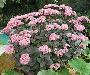 Atraktivní odrůda rozchodníku s šedě zelenými listy a růžovými květy.