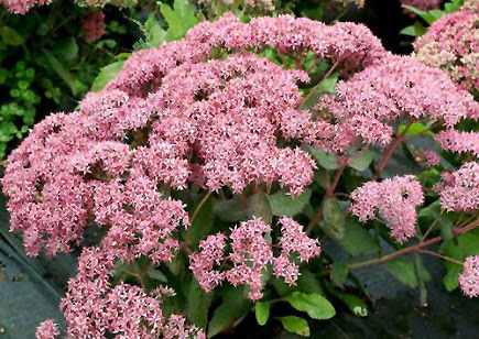 Nová, kompaktní odrůda s modro zelenými listy a červeno růžovými květy.