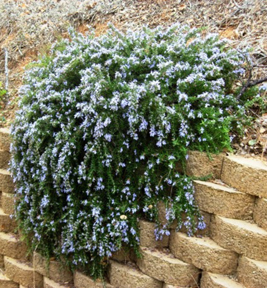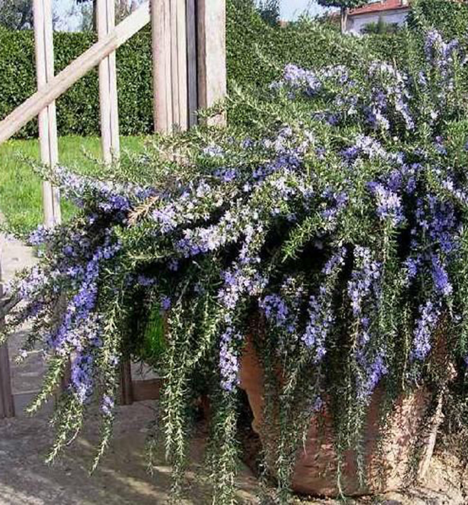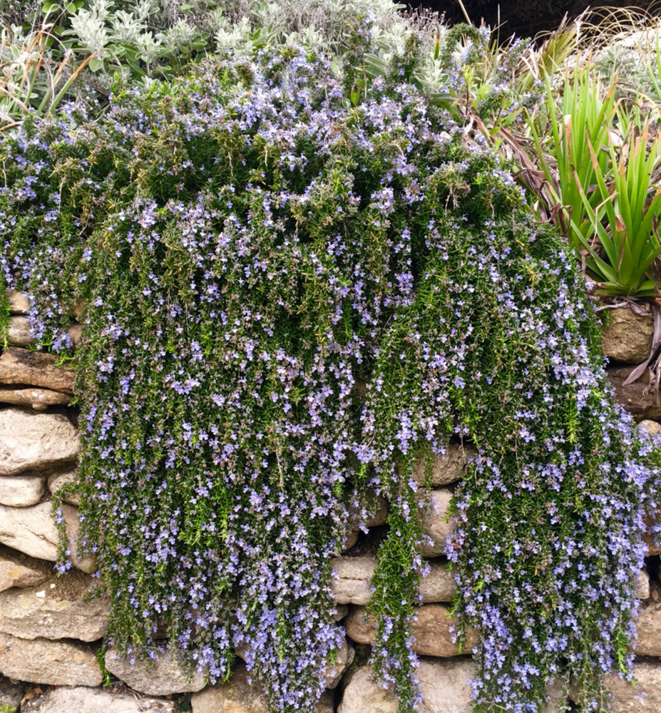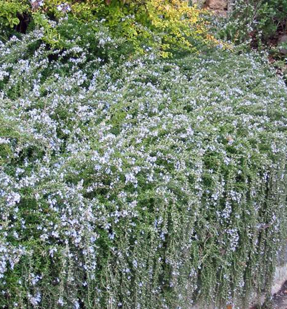 Převislý rozmarýn tvořící vodopády se stříbřitě zelenými listy a příjemnou vůní.