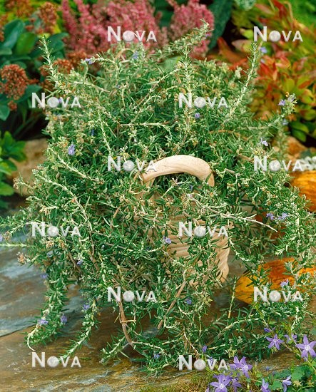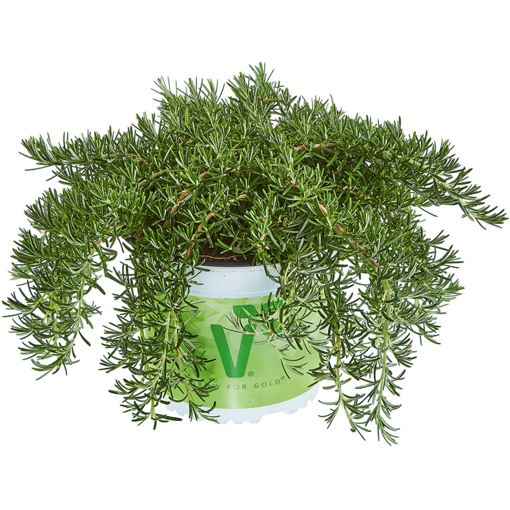 Aromatický rozmarýn s převislými výhony a stříbrně zelenými listy.
