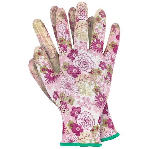 Charakteristika: Zahradní rukavice vyrobeny z odolného polyesterového úpletu s atraktivním květinovým vzorem. Dlaň a prsty jsou potaženy nitrilovou vrstvou, která zvyšuje odolnost vůči mastnotě a olejům a zároveň poskytuje spolehlivý úchop. Ukončeno elastickým lemem. Jsou elastické, díky čemuž se výborně přizpůsobí ruce. Dokonale poslouží v domácnostech a zahradě.