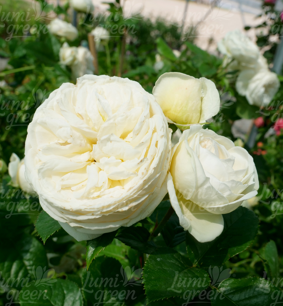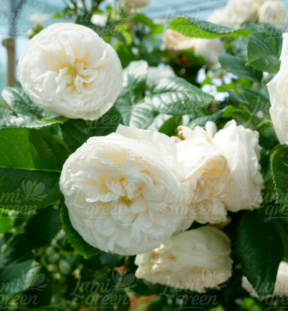 Nostalgická odrůda růže s plnými krémově bílými květy.