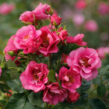 Atraktivní kompaktní růže s tmavě růžovými až světle růžovými květy omamné vůně.
