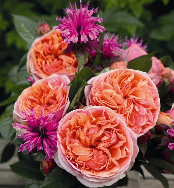 Odrůda s mohutnými nostalgickými růžovo-oranžovými květy a příjemnou vůní.