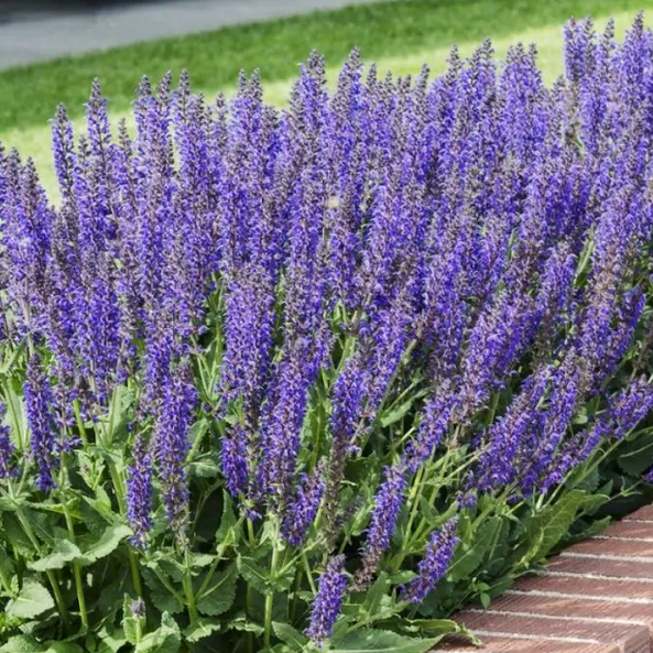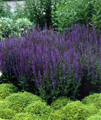 Populární šalvěj s výraznými klasy modře fialových květů kvetoucí několikrát do roka.