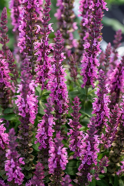Bohatě a dlouho kvetoucí šalvěj s růžovými květenstvími a aromatickými listy.