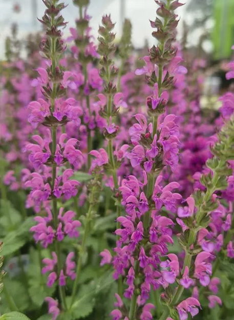 Nízká aromatická trvalka s výraznými purpurovorůžovými klasnatými květenstvími.