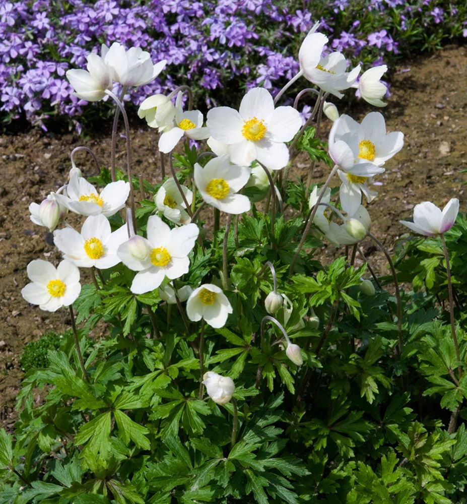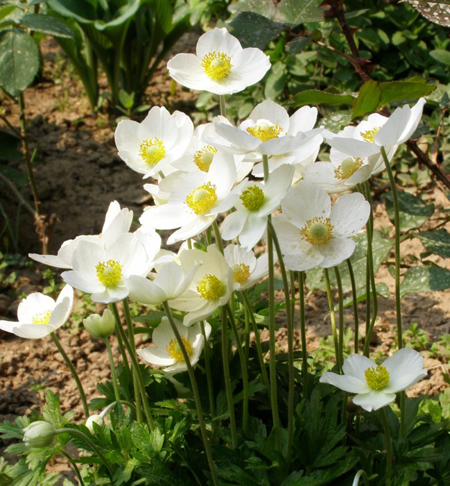 Nižší, bohatě kvetoucí odrůda se sněhobílými květinami a kontrastními žlutými tyčinkami.