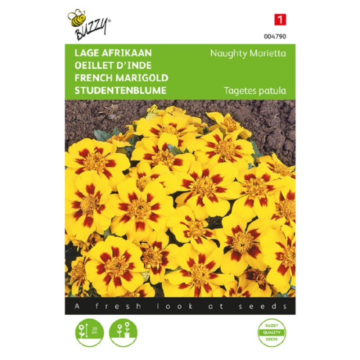 Charakteristika: Aksamitníky patří mezi nejznámější letničky, které známe také pod názvem afrikánky nebo smraďošky. Květy kolem sebe šíří specifickou vůni, která přirozeně odpuzuje škodlivý hmyz. Kvete velmi dlouho, květiny se tvoří neustále po celou sezónu. Aksamitník rozložitý ´Marietta´ kvete se zářivými, zlatožlutými okvětními lístky s výrazným, tmavě červeným středem. Dorůstá výšky 20 cm.