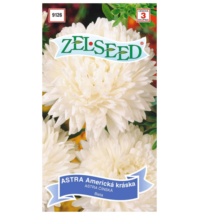 Charakteristika: Astra je letnička, která původem pochází z Asie. Balení obsahuje semena plnokvěté astry s velkými bílými květy, jejichž vnitřní lupeny mají stočený trubkovitý tvar. Kvete od června až do listopadu. Tento kultivar roste do výšky přibližně 80 cm, květiny jsou vhodné k řezu do kytic a květinových aranžmá. Mohou se pěstovat přímo v záhonu, ale také v květináči.