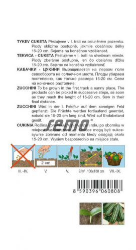 Pěstování: Cuketu vyséváme do úrodné půdy, která je bohatá na živiny. Vyséváme ji v dubnu na kryté stanoviště ve fóliovníku nebo ve skleníku. V květnu ji můžeme vysévat i do volné půdy. Plody sbíráme začátkem července až do konce srpna.