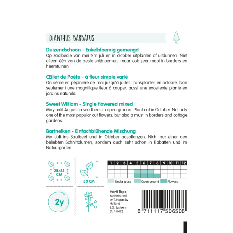 Charakteristika: Vypěstujte si ze semen nejznámější dvouletou rostlinu, která je pěstována na záhonech. Barevné květy hřebíčku mají příjemnou vůni a oceníte nejen v zahradě, velmi pěkně vyniknou v letních kyticích a aranžmá. Hodí se i na výsadbu s jinými letničkami a trvalkami.