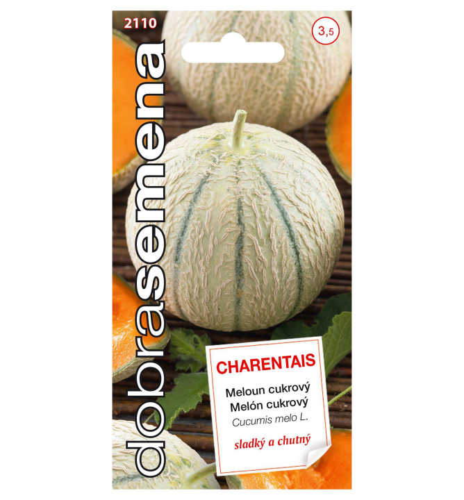 Charakteristika: 'Charentais' je tradiční, vynikající francouzská odrůda. Plody váží přibližně 1-1,5 kg. Meloun má světlo-šedou až šedo-zelenou kůru, dužina je meruňkově-oranžová, velmi sladká s typickou vůní. Chuť dužiny připomíná papáju s ananasem.