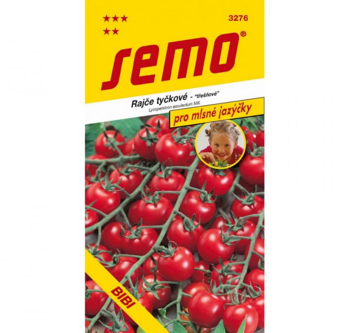 Charakteristika: Rajče tyčkové 'BIBI' je odrůda z kolekce Pro mlsné jazýčky. Má srdíčkové třešňové plody se špičkou. Zelené plody mají jemné, tmavší líčko, v zralosti se vybarvují do jednotné červené barvy. Jsou pevné, výborné chuti a jsou vhodné pro přímý konzum a krátkodobé skladování. Odrůda je extrémně raná s dlouhými třásněmi plodů.