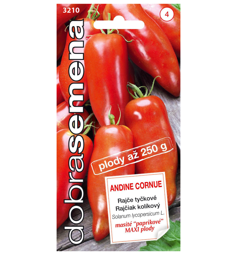 Charakteristika: Rajče tyčkové 'ANDINE CORNUE' je francouzská odrůda s dlouhými, paprikově tvarovanými plody, které dosahují délky až 18 cm. Jejich sytě červená barva a jemná, nasládlá chuť jsou ideální pro čerstvé saláty, sendviče nebo jako základ pro lahodné omáčky a salsy. Vyniká nejen svým vzhledem, ale také vysokou úrodností a odolností vůči chorobám. Vhodná pro pěstování ve sklenících i venku.