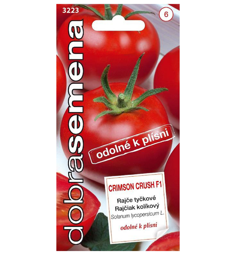 Charakteristika: Rajče tyčkové 'CRIMSON CRUSH' F1 je spolehlivá odrůda s červenými plody s velmi lahodnou chutí. Plody jsou kulovité, váží cca 150 g. Tato odrůda je velmi odolná vůči plísni, proto není nutná dodatečná chemická ochrana. Je vhodný k přímé konzumaci, ale může se zpracovat také na šťávy a pyré.