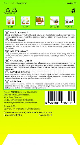 Semena raného listového salátu pro jarní a podzimní výsev.