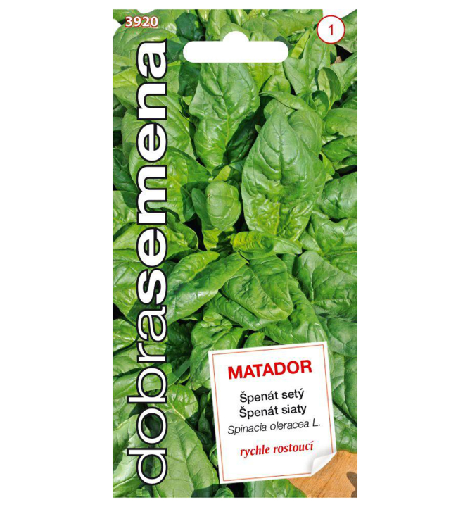 Charakteristika: Špenát setý 'MATADOR' je rychle rostoucí špenát na jarní a podzimní pěstování. Odrůda je velmi produktivní a odolná vůči chladu, díky čemuž si můžete vychutnat špenát iv nejchladnějších měsících roku. Vytváří středně velké rostliny se sytě zelenými středně velkými a nepravidelně bublinatými listy. Listy mají silnou a bohatou chuť, pro kterou je perfektní do zapékacích mís, vaření, dušení, ale i jako přílohová zelenina. Zelené listy špenátu se mohou pochlubit bezkonkurenčním synergickým doplňkem vitamínů, minerálů, flavonoidů a karotenoidů, které při této kombinaci chrání zrak.
