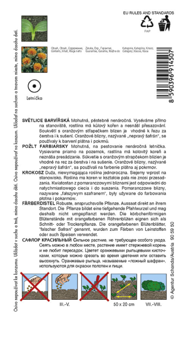 Charakteristika: Světlice barvířská ´Orange Bowl´ je jednoletá nenáročná rostlina dorůstající výšky 60-80 cm. Kvete od června do září nádhernými oranžovými květy, které svým ohnivým vzhledem oživí každou zahradu. Květy se tradičně používají pro barvení textilií a přípravu čajů.