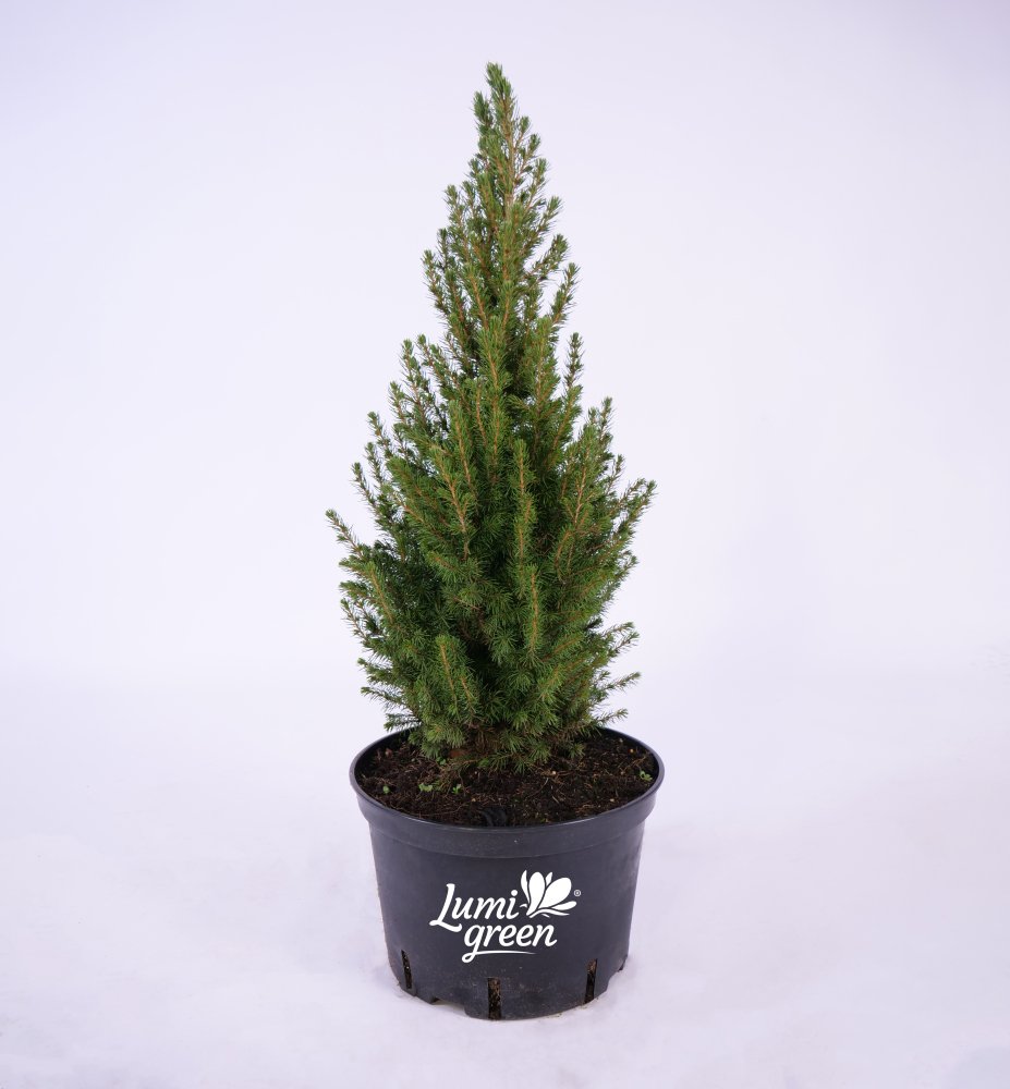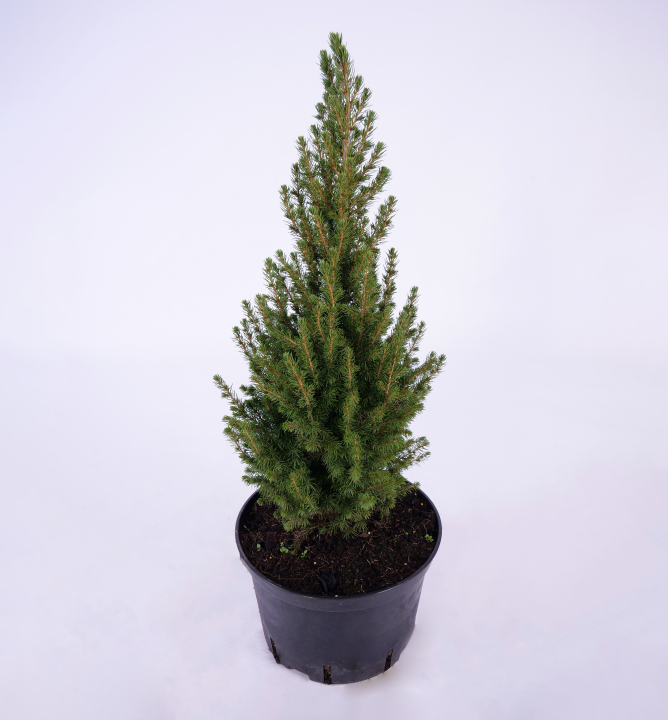 Charakteristika: Smrk bílý ´Conica´ je jeden z nejvyhledávanějších kultivarů smrku bílého. Má kuželovitý kompaktní tvar a na jaře má díky hustým mladým výhonům svěží zelenou barvu. Pravidelný tvar si zachovává přirozeně, nevyžaduje řez. Je výborný také jako vánoční stromek.
