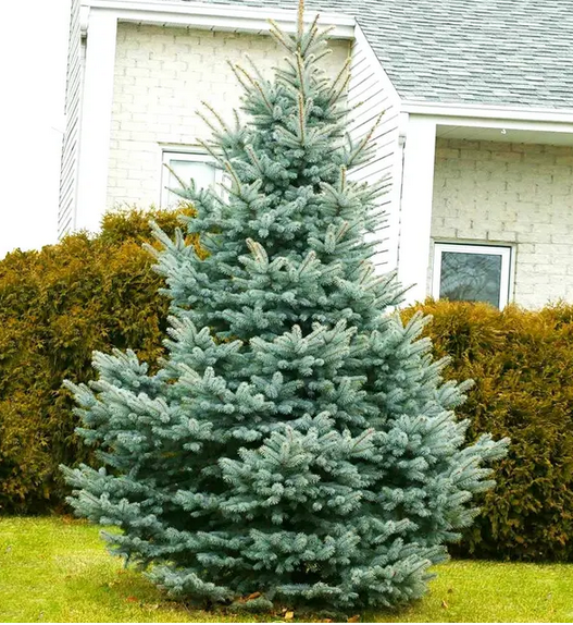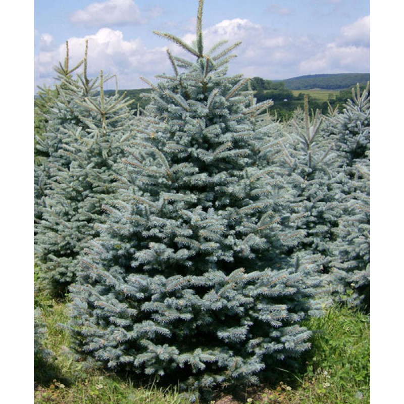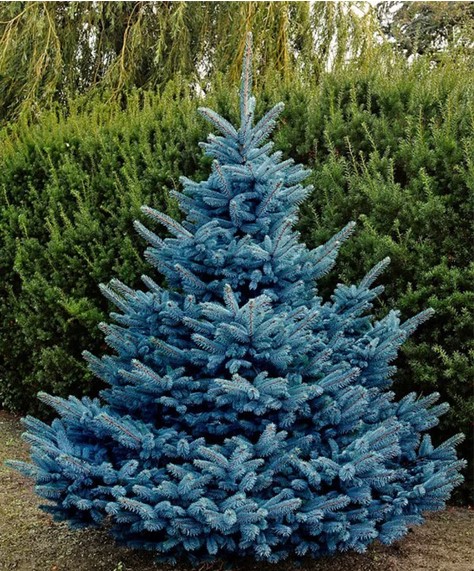 Smrk s pravidelným kuželovitým vzrůstem a stříbrnomodrým jehličím.