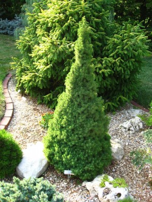 Nový miniaturní smrk s velmi kompaktním úzkým kuželovitým vzrastem.