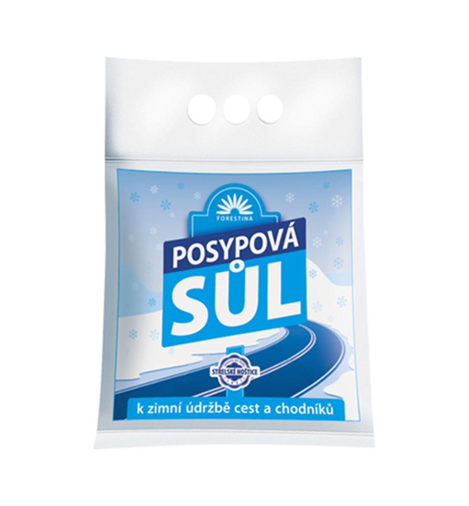 Charakteristika: Posypový rozmrazovací prostředek k uvolnění ušlapaného a ujetého sněhu, ledu a námrazy z chodníků, silnic a dopravních ploch při jejich zimní údržbě. Obsahuje hrubé a jemné krystaly soli. Jemné krystaly okamžitě rozmrazují led, tlustší krystaly působí dlouhodobým rozmrazovacím efektem. Má účinnost až do -7 °C.