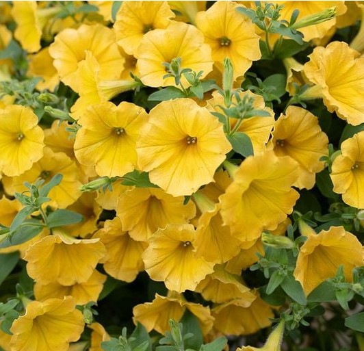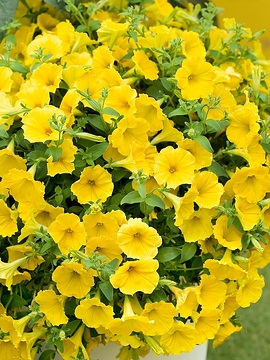 Nepřehlédnutelná surfinie kvetoucí množstvím zářivě žlutých květů.