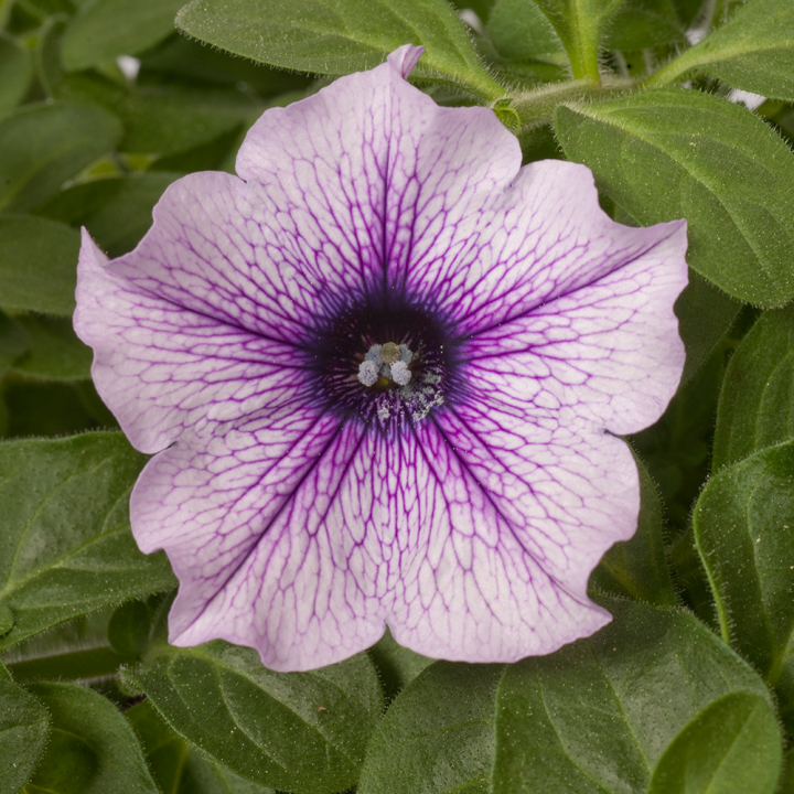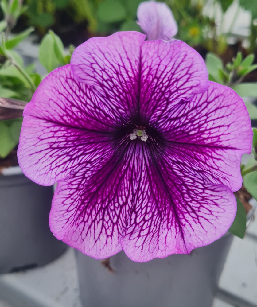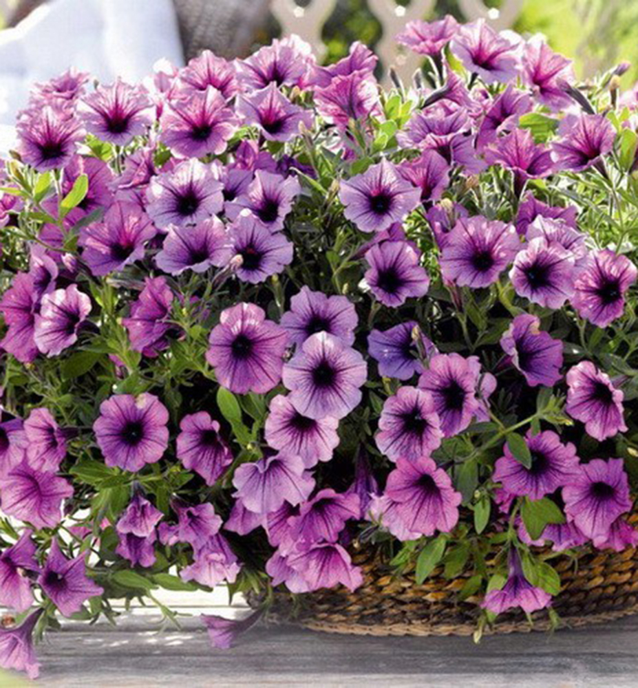 Okouzlující surfinie vytvoří vodopád purpurových květů s výraznou žilnatinou.