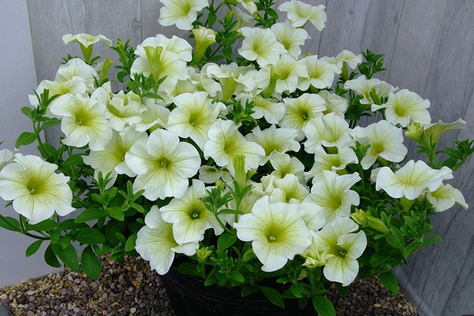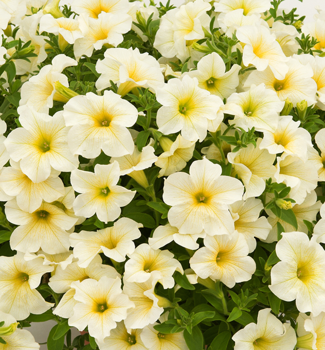Atraktivní surfinie se světle žlutými květy a dřívějším nástupem kvetení.
