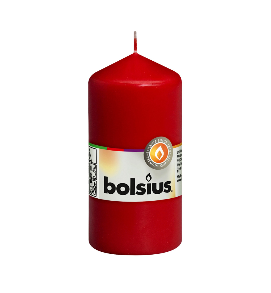 Svíčka Bolsius Pillar 120/60 mm, válcová, červená