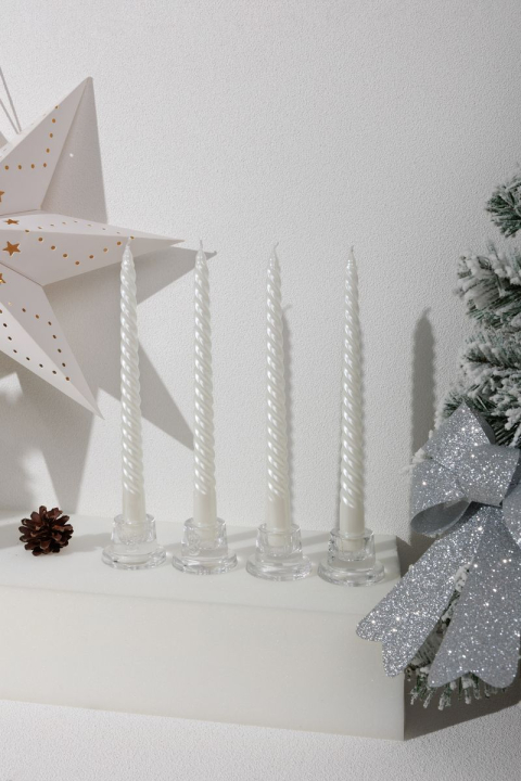Charakteristika: Elegantní spirálové svíčky v bílé barvě mají klasickou výšku 25 cm, díky čemuž jsou ideální pro různé sváteční dekorace. Balení obsahuje 4 kusy těchto točených svíček, které přidají vašemu interiéru nádech luxusu a klidu. S dobou hoření až 4 hodiny se perfektně hodí pro slavnostní stolování nebo adventní věnce.