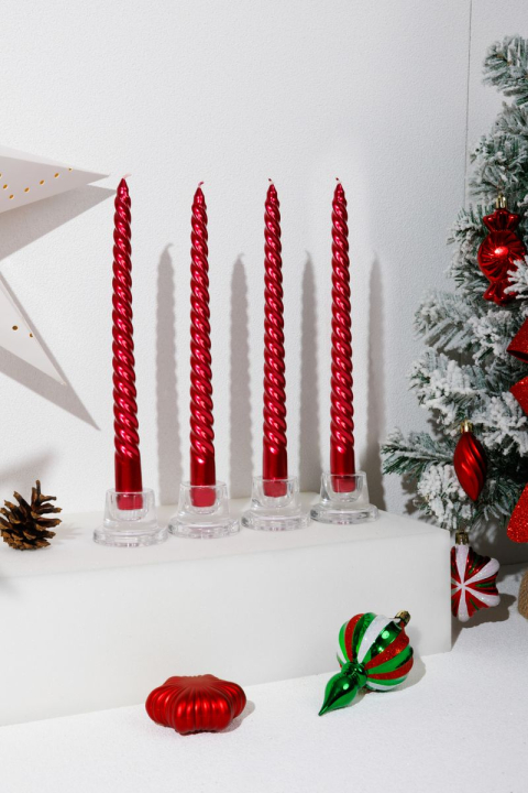 Charakteristika: Elegantní spirálové svíčky v červené barvě mají klasickou výšku 25 cm, díky čemuž jsou ideální pro různé sváteční dekorace. Balení obsahuje 4 kusy těchto točených svíček, které přidají vašemu interiéru nádech luxusu a klidu. S dobou hoření až 4 hodiny se perfektně hodí pro slavnostní stolování nebo adventní věnce.