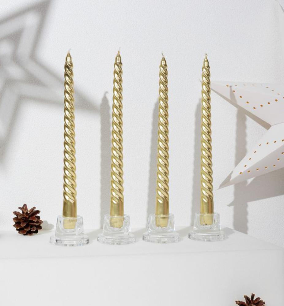 Svíčka MAGICHOME VÁNOCE, 25 cm, bal. 4 ks, zlatá, spirálová, točená
