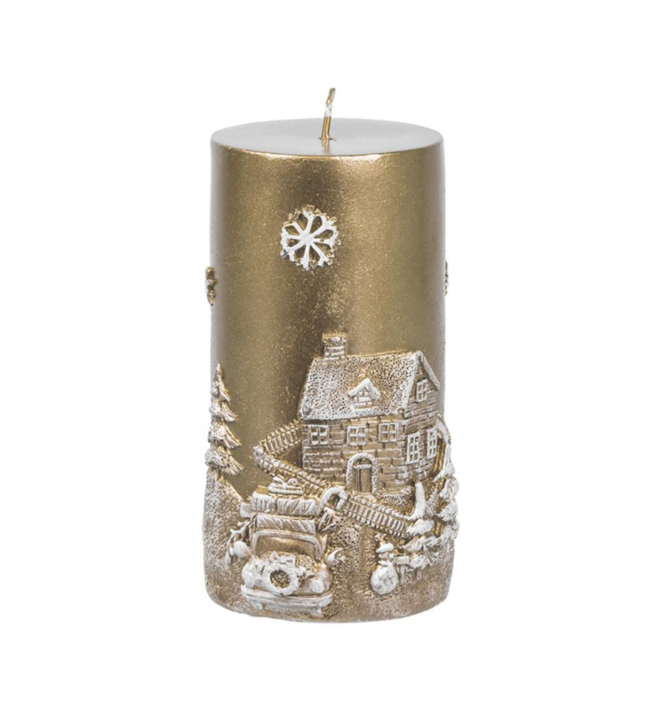 Svíčka VÁNOCE, 7x12,5 cm, zlatá s krajinkou