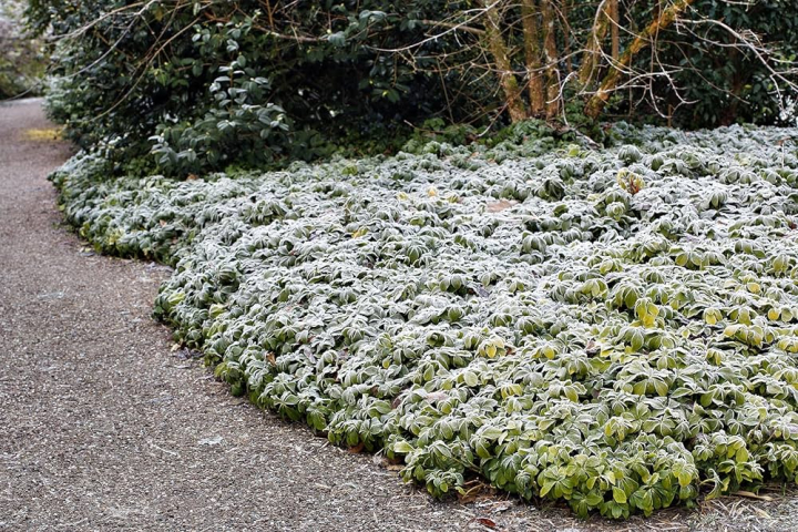 Stálezelená, půdopokryvná, stínomilných trvalka s atraktivními listy a bílými květy.