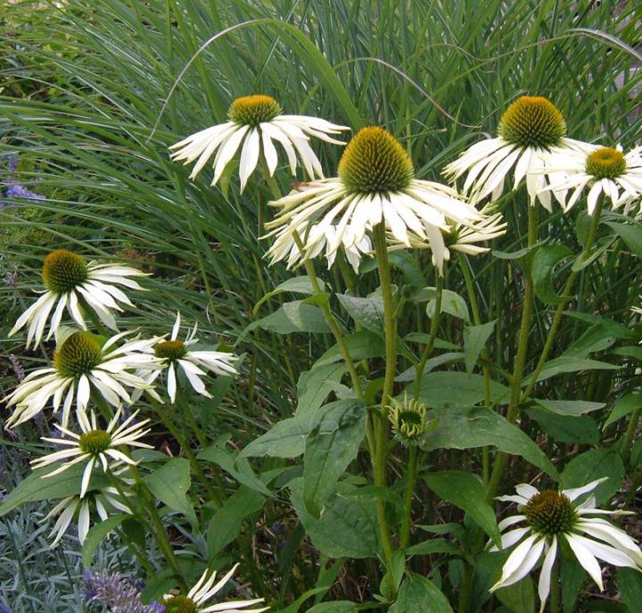 Třapatka "Bílá labuť' s velkými trvanlivými bílými květy.