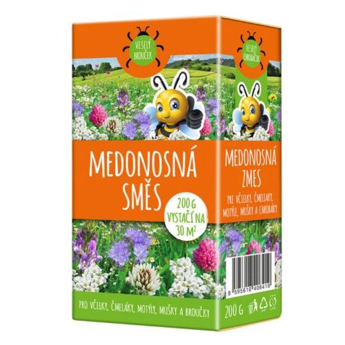 Charakteristika: Travní směs medonosná louka je druhově velmi pestré travní osivo. Obsahuje podíl různých druhů trav, ďateľovín a ostatních dvouděložných bylin, které jsou bohatým zdrojem pylu a nektaru pro sprašované druhy hmyzu. Díky svému speciálnímu složení je vhodné používat směs pro prosévání na místech, kde lze předpokládat nerušený výskyt včel a dalších opylovačů. Obsažené druhy rostou pomaleji, proto lze předpokládat nižší počet kosieb během vegetačního období než u klasických travních porastov.