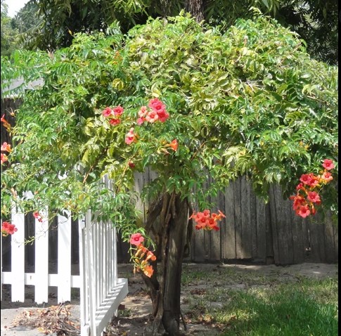 Popínavý, exoticky působící trubač s červenými trychtýřovitými květy.