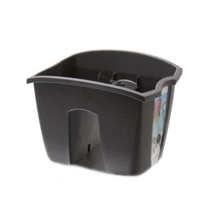 Plastový truhlík antracitové barvy s upraveným středem na zábradlí.